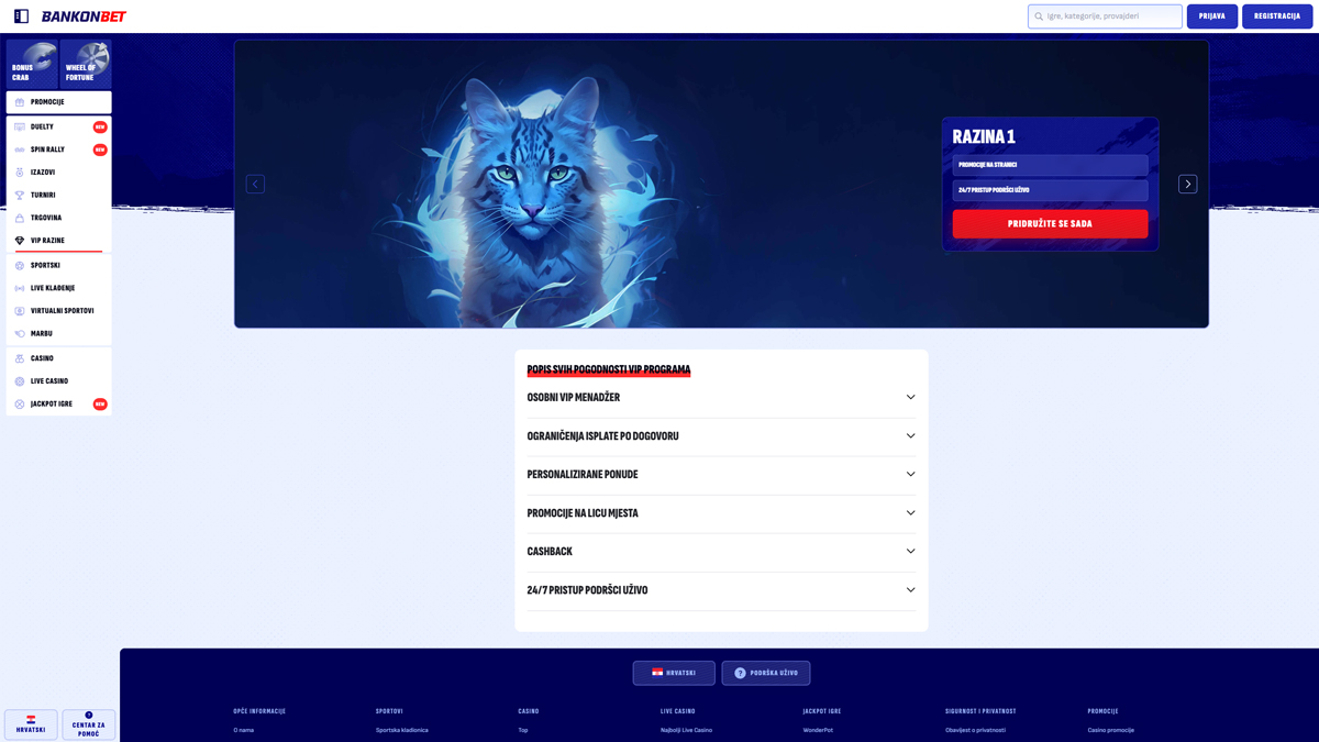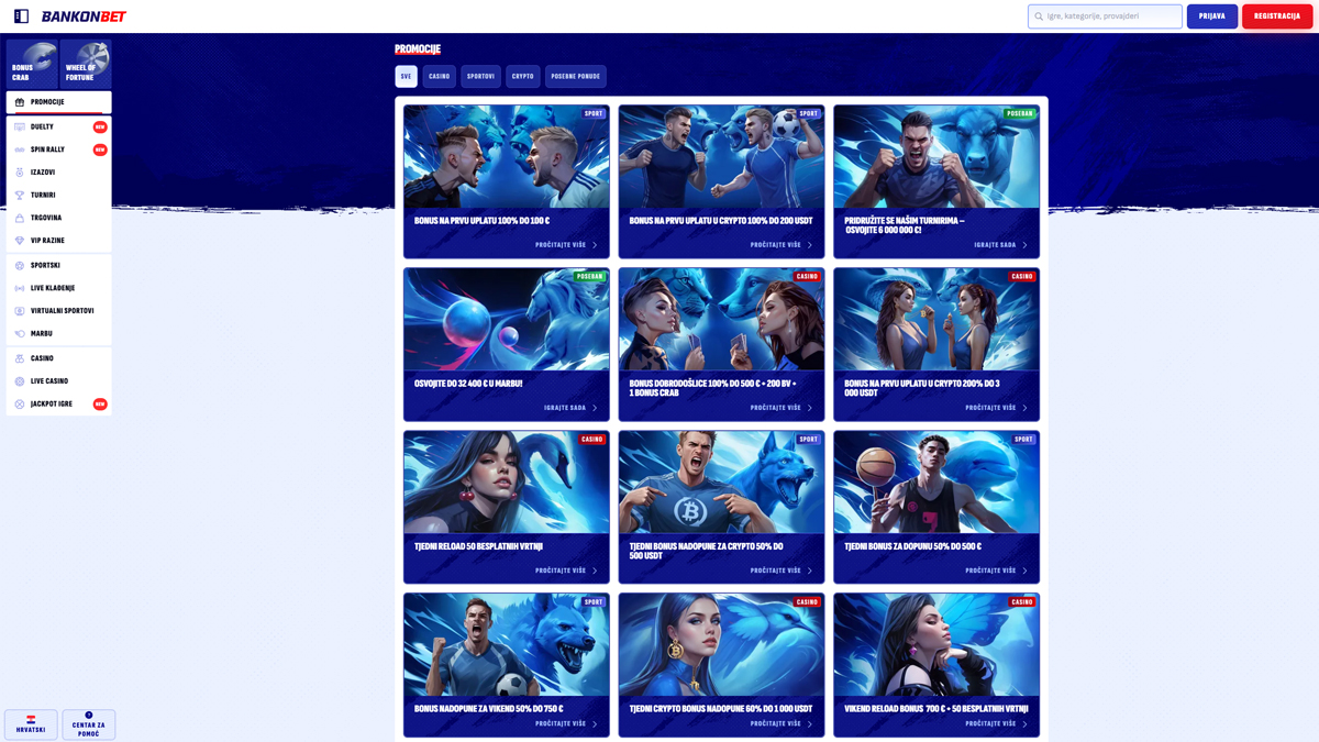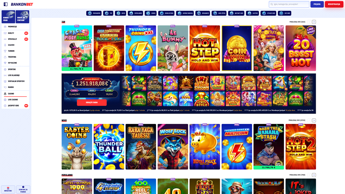 Bankonbet Casino profilira se kao moderna sve-u-jednom platforma za kockanje koja kombinira opsežnu biblioteku casino igara s integriranom sportskom kladionicom. Pokrenut 2022. godine, a kojim upravlja Rabidi N.V. pod PAGCOR licencom, platforma se fokusira na veličinu, fleksibilnost i međunarodni doseg. Hrvatski igrači su dobrodošli s potpunim pristupom automatima, live casinu i sportskom klađenju, podržani impresivnim popisom od više od 118 pružatelja igara i više od 9.500 automata. Sučelje je čisto i funkcionalno, što čini navigaciju između casino odjeljaka besprijekornom, dok mobilna optimizacija osigurava dosljedne performanse na svim uređajima. Snaga Bankonbeta leži u pružanju raznolikosti bez zatrpavanja korisnika, kombinirajući dubinu sadržaja sa strukturiranim rasporedom koji je prikladan i za povremene sesije i za dulje cikluse igranja.