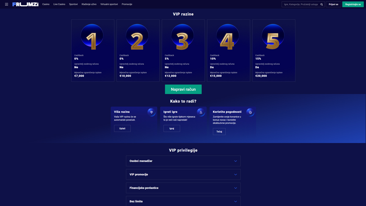 VIP program VIP program Višerazinski program vjernosti za redovite ili visoko vrijedne igrače koji nudi personalizirane nagrade poput ekskluzivnih bonusa, bržih isplata i osobnih account managera.