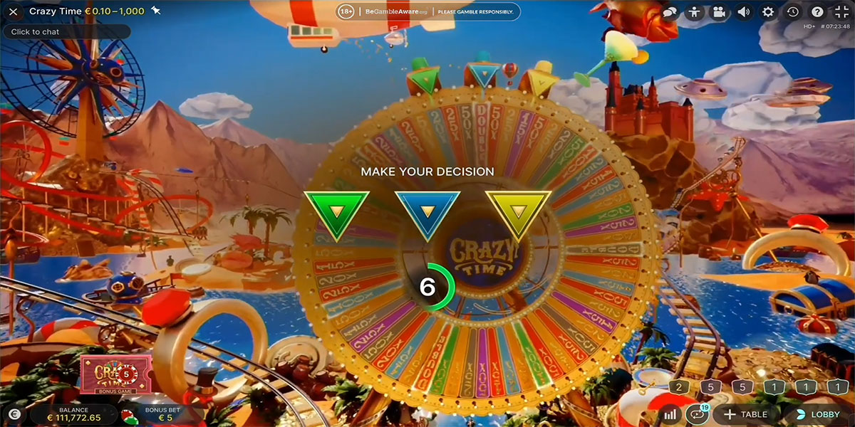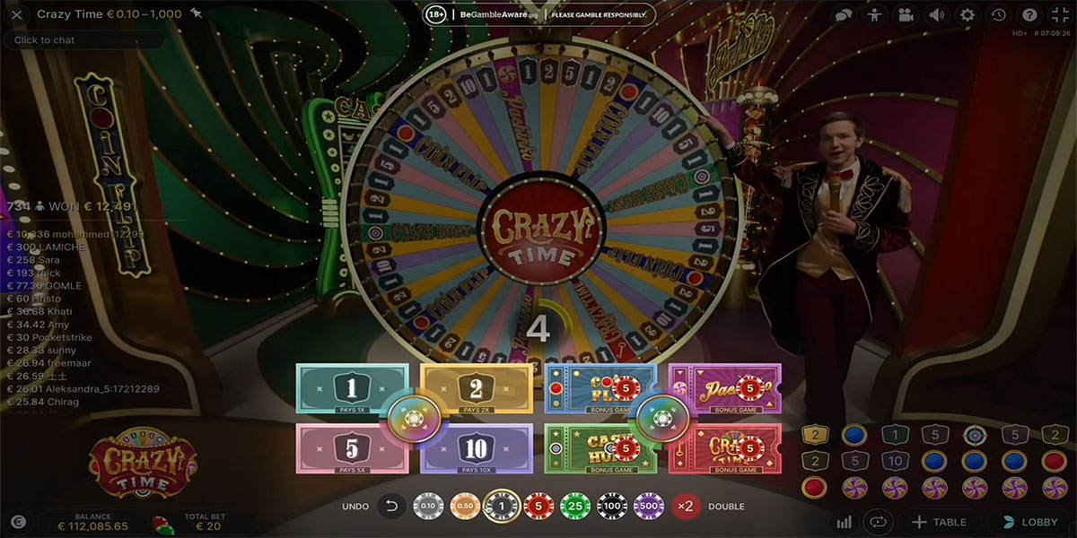 Igraj Crazy Time, popularnu live casino igru, u online kasinima koja prihvaćaju hrvatske igrače. S bonus igrama i velikim multiplikatorima.
