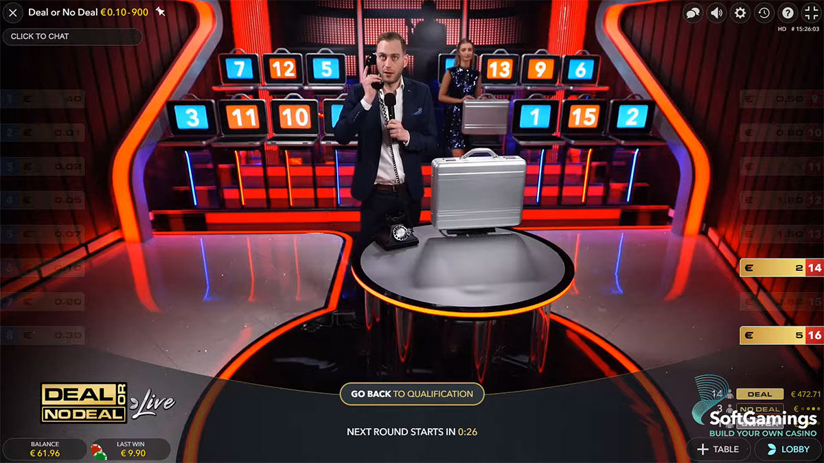 Konačno, kvalifikacijska faza također se može smatrati bonus mehanizmom. Igrači koji uspješno prođu RNG test trezora ili slične mehanike dobivaju pristup glavnoj rundi, što je prva prilika za sudjelovanje u rizičnom dijelu igre. To dodaje dodatnu napetost prije glavne runde i dodatno pojačava uzbuđenje. Ukratko, bonus funkcije Deal or No Deal Live složeno su isprepletene s TV formatom: multiplikatori, ponude bankara i kvalifikacijski spinovi zajedno stvaraju visoku napetost i nagrađuju strateške odluke, zadržavajući nepredvidivost i imerzivnu napetost koja karakterizira live casino iskustvo.