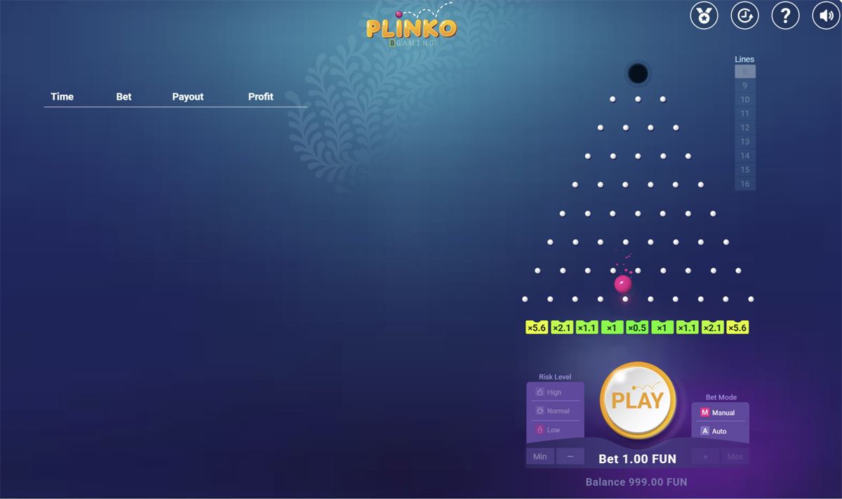 Privlačnost igre povećava se mogućnošću prilagodbe volatilnosti i broja redova, što omogućuje izbor između 8, 10, 12, 14 ili 16 redova – što izravno utječe na nasumičnost i potencijalne isplate. Korisnici mogu odabrati razinu rizika na nisku, srednju ili visoku, pri čemu viši rizik donosi priliku za dobitak do 1.000× uloga. Svako spuštanje jamči određeni dobitak, a niži rizik nudi manje, ali redovitije isplate. Ova ravnoteža jednostavnosti, kontrole i iščekivanja čini Plinko idealnom alternativom tradicionalnim slotovima za hrvatske igrače.
