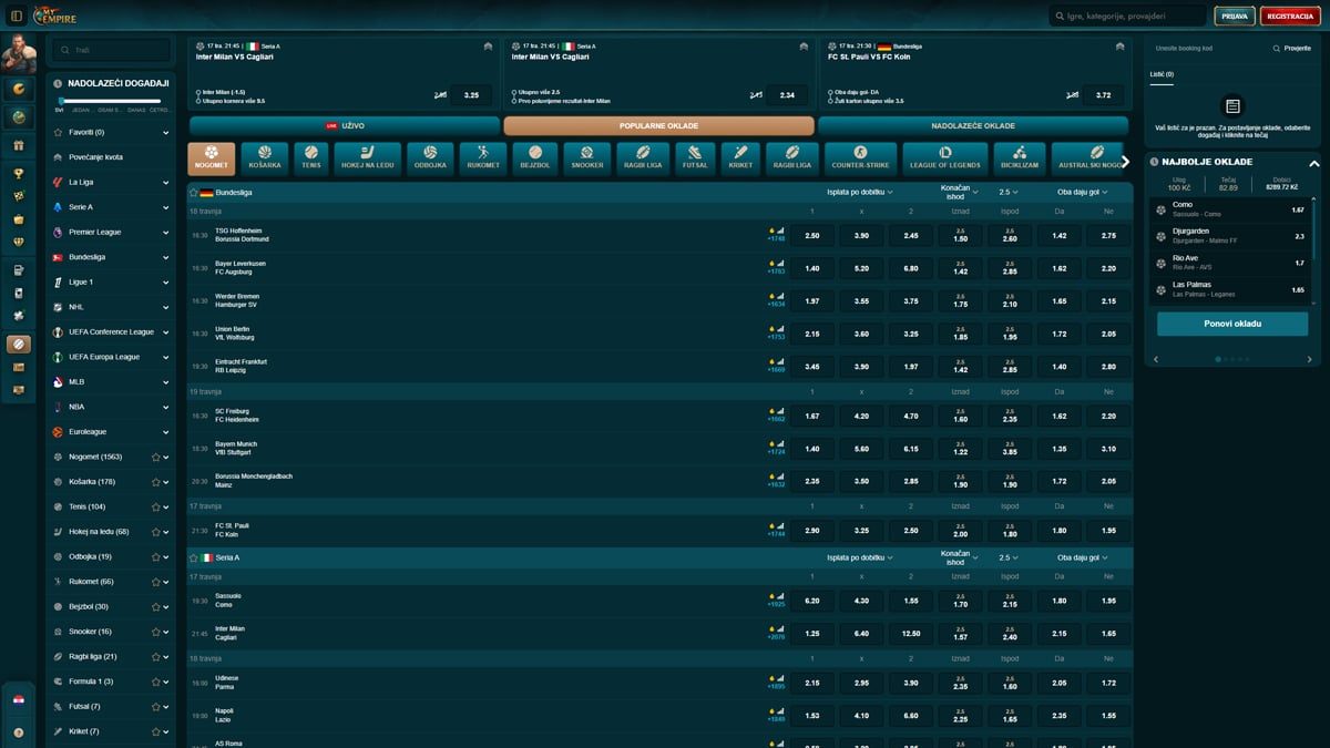 Sportske oklade su dostupne u podržanim regijama i mogu biti dostupne hrvatskim igračima ovisno o trenutnim postavkama platforme.