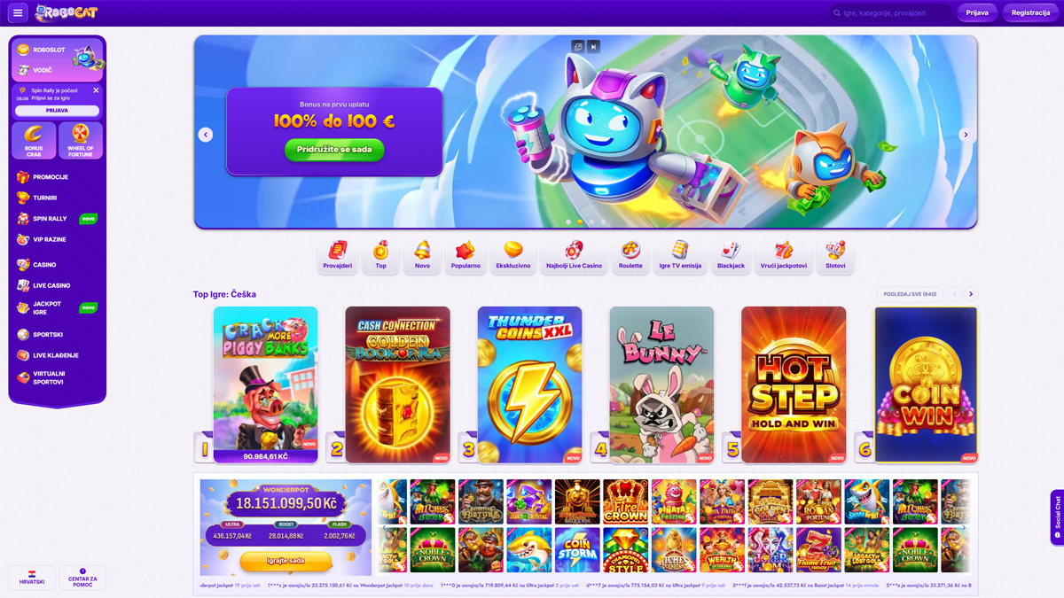 Casino RoboCat kombinira moderan dizajn s fokusom na glatko igranje i povoljne značajke. Platforma je stvorena za igrače koji cijene brzinu, preglednost i raznolikost. Nudi širok izbor automata, popularnih stolnih igara i live casina. Navigacija je intuitivna, učitavanje brzo, a opći raspored omogućuje jednostavan pristup svemu, bilo da igrači vrte automate, pregledavaju promocije ili upravljaju svojim računom.