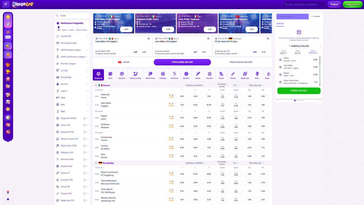 - Sportsko klađenje dostupno kao dodatna značajka u podržanim regijama.