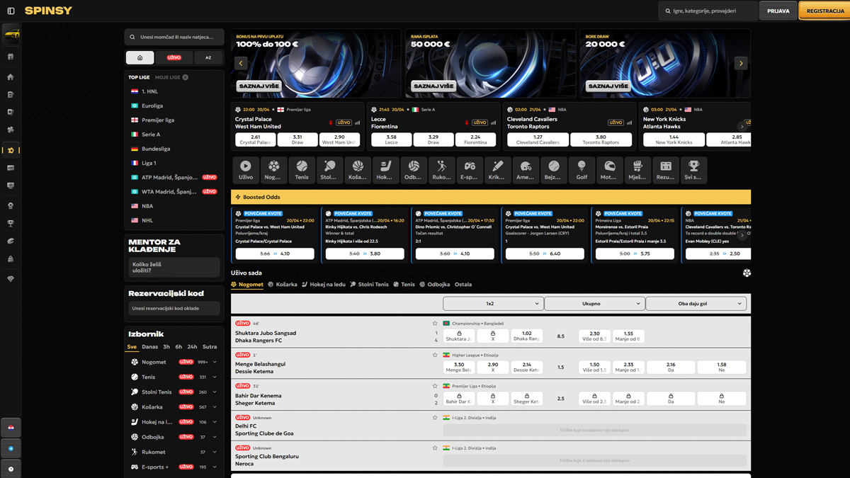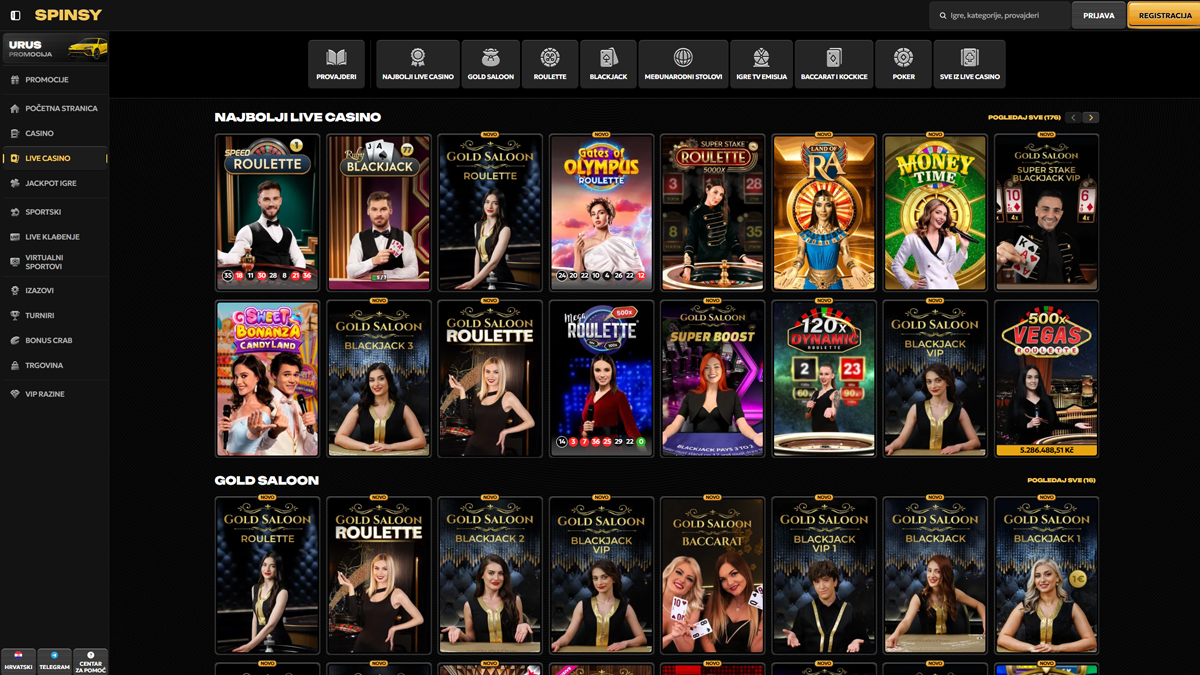 Kasino uživo Kasino uživo Casino igre u stvarnom vremenu prenošene streamingom iz profesionalnih studija ili fizičkih casina s pravim krupijeima i interaktivnim stolnim igrama.